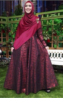 | Contoh Dress Muslim Brokat Kombinasi Batik |